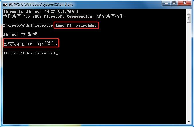 3、在命令行窗口中输入 ipconfig /flushdns 回车