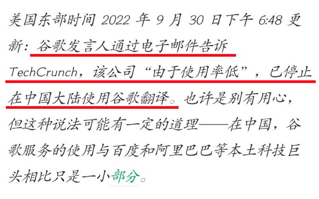 今天查文献例行用谷歌翻译浏览,却发现突然无法使用。谷歌官方回应:翻译服务由于“使用用户过少”故而退出中国大陆市场。