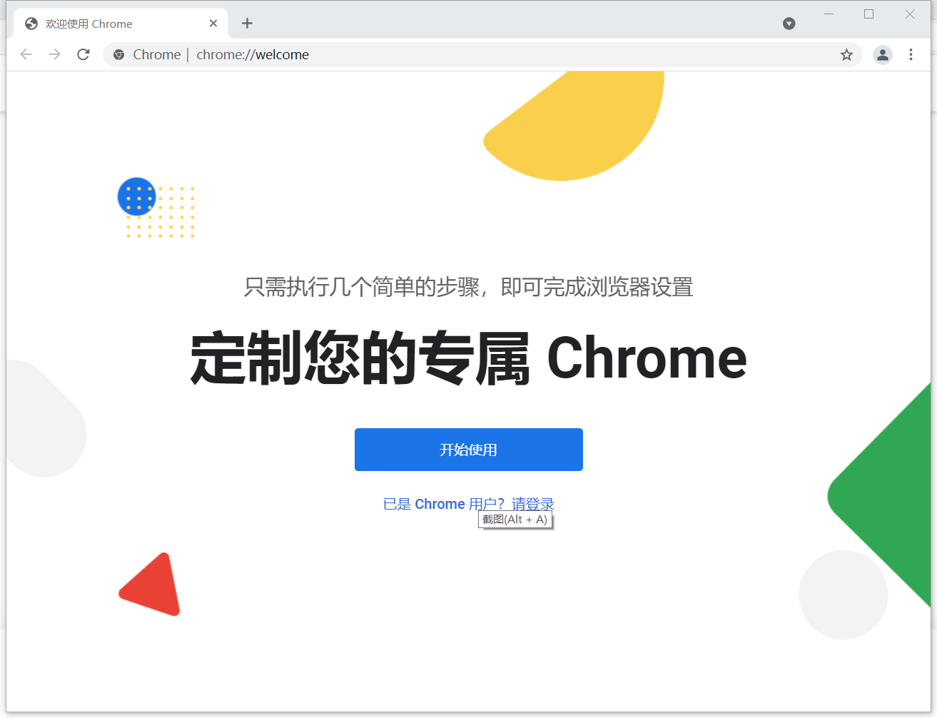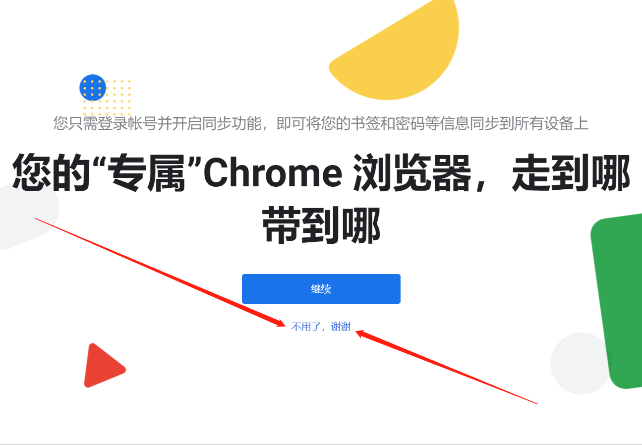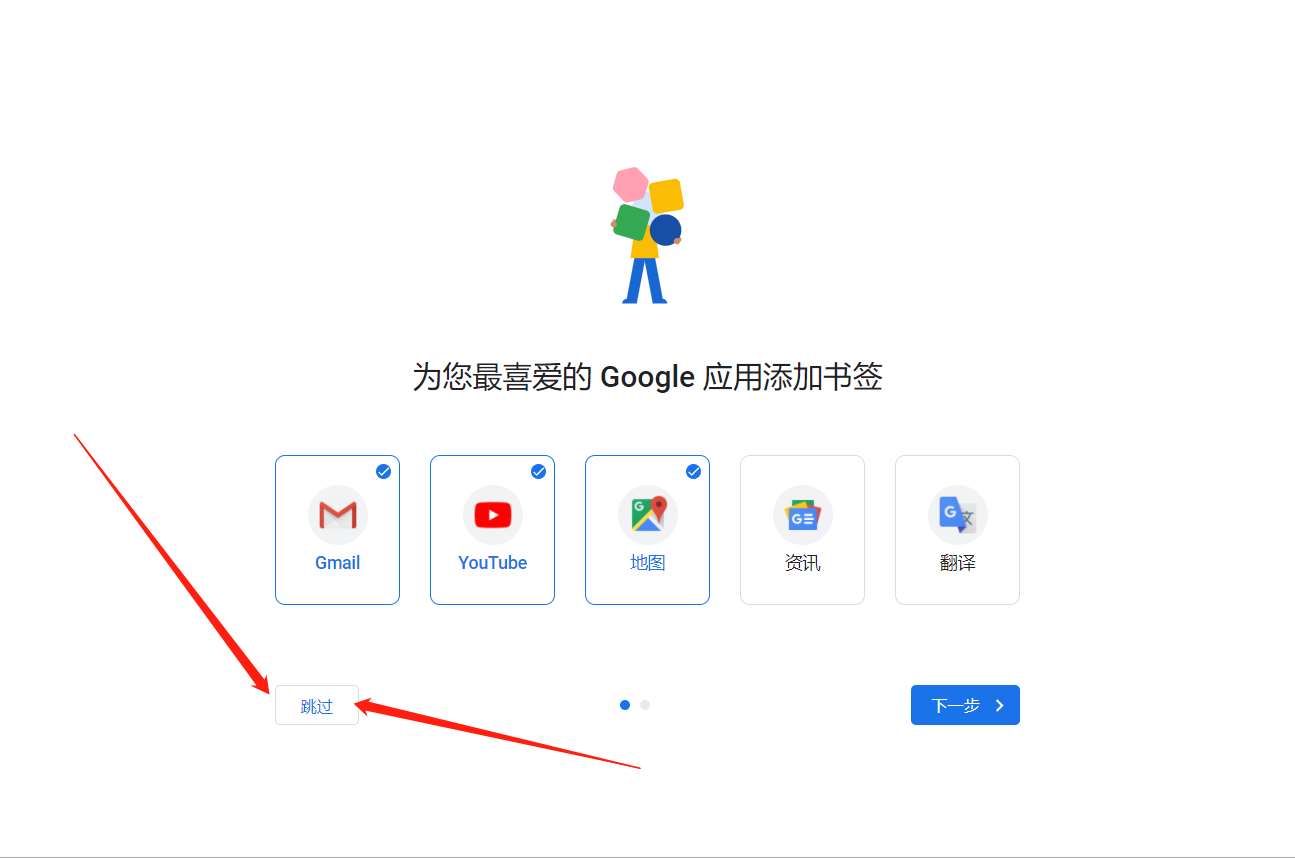 配置谷歌浏览器,点击开始使用后,进入下个界面我们选择跳过