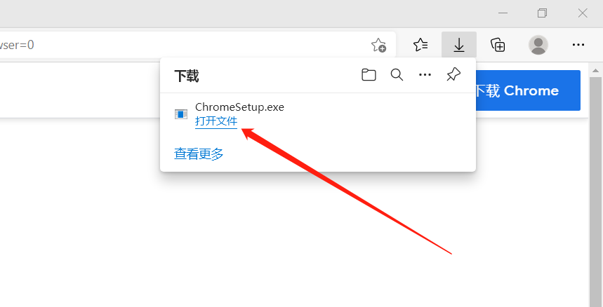 下载完后会自动在右上角弹出通知,我们点击:打开文件