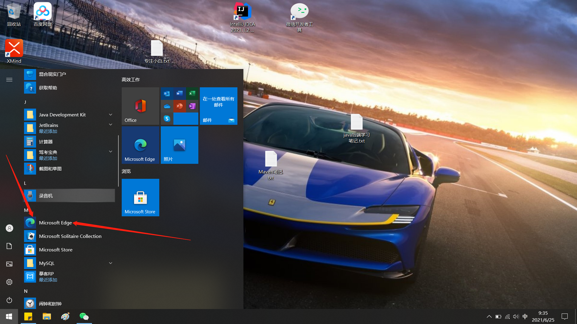 打开菜单、然后点击:Windows 10 自带的Microsoft Edge 浏览器