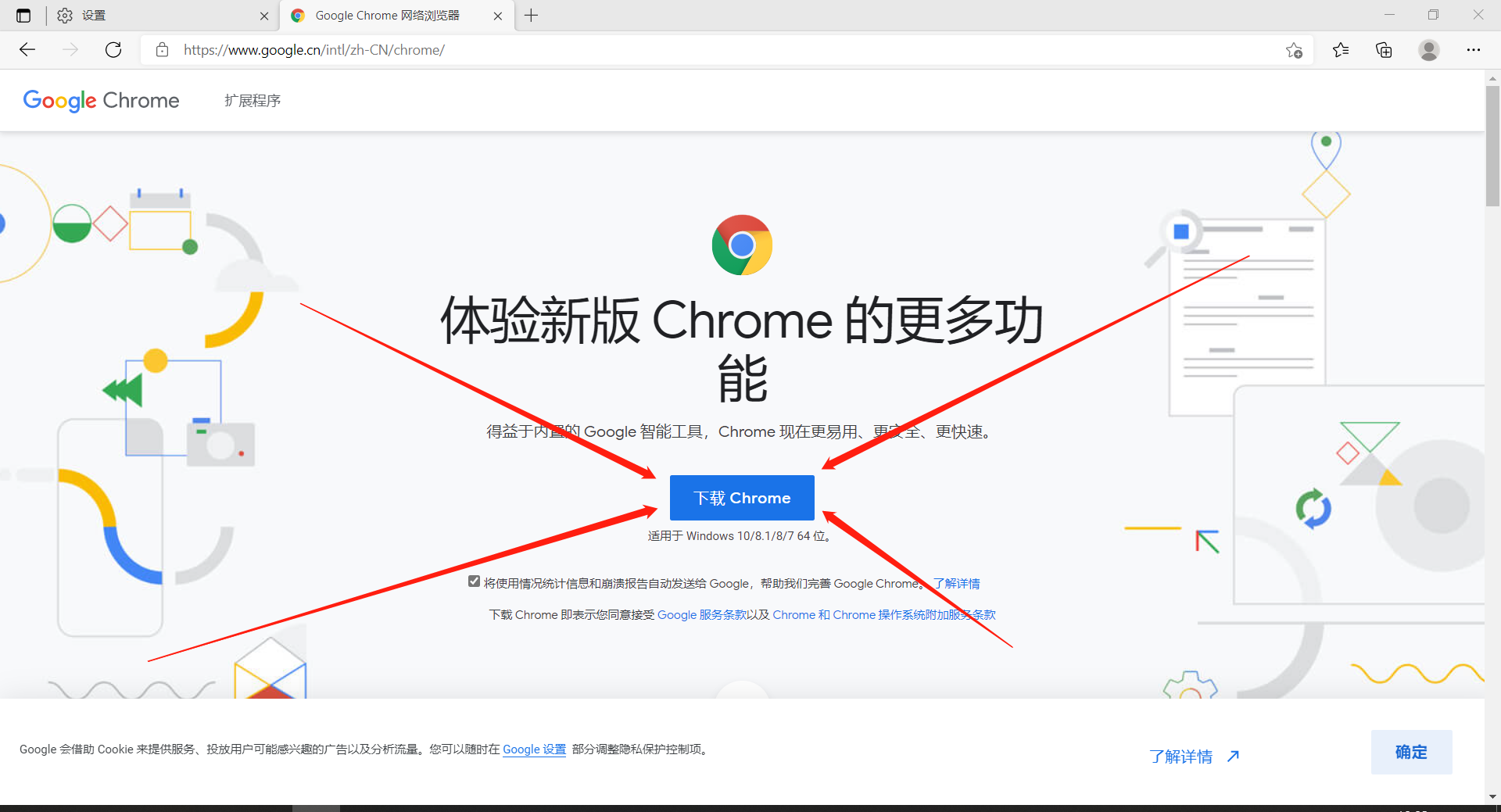 现在我们来配置谷歌浏览器的下载位置吧,我们把它设置成和Microsft Edge浏览器的下载位置一下吧!