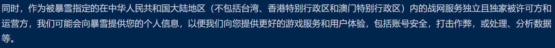 因为涉及数据出境了(暴雪是美国公司)。