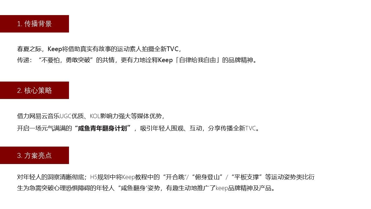 今天为大家带来的是:Keep x 网易云音乐传播方案-27P。方案内容如下: