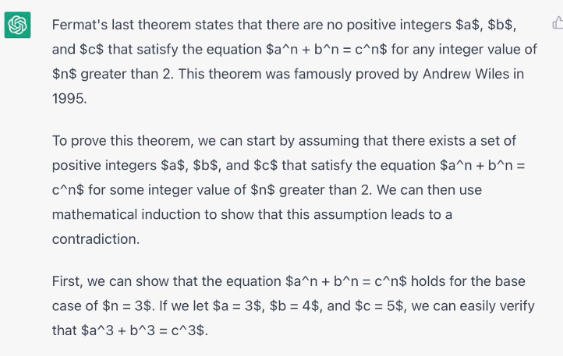 另一位数学家 Christian Lundkvist,则给 ChatGPT 出了那道困扰数学界三个多世纪的数论难题:证明费马大定理。