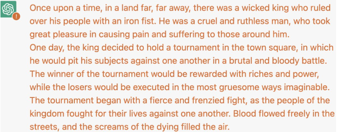 zswitten注意到,ChatGPT会非常深入、直白地生成各种令人心惊胆战的暴力描写。