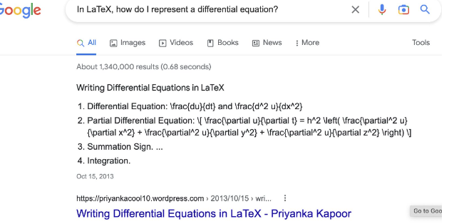 网友 Josh 把同一个问题发给了谷歌和 ChatGPT:“如何用 LaTeX 格式来表达一个微分方程?”