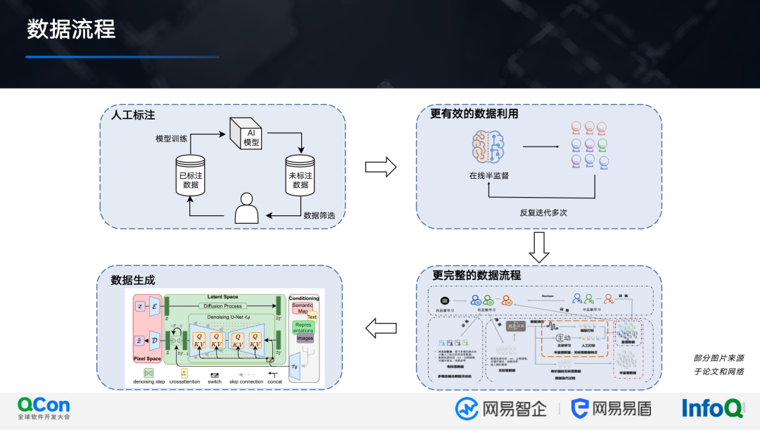 在出海场景,网易云商通过 AI 技术提供了多语种处理能力,并协助客户解决了海外智能客服场景接入的问题。 冯旻伟接下来总结了大模型技术和生成式 AI 两大前沿 AI 技术为企业带来的机遇。网易云商认为,由于大模型技术构建成本较高,中小企业难以负担,因此 SaaS 场景中主要需要关注大模型的平民化和必要性。生成式 AI 是最近热度非常高的另一大前沿技术。生成式 AI 可以应用在图像生成、文本和语音生成等场景,对内容创作甚至整个 AI 产业都会产生深刻影响。例如,未来 AI 从业人员可以使用生成模型来生成大多数训练数据。大幅减少数据的采集与购买成本。