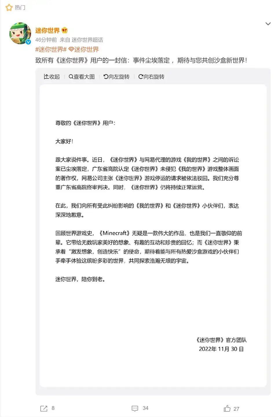 《迷你世界》侵权《我的世界》终审判定赔偿网易 5000 万 ...