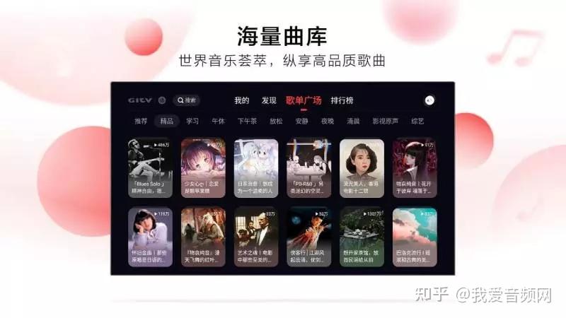 与手机版、电脑版一致,TV版同样享有网易云音乐多达千万首的曲库,囊括百万无损SQ音乐,即时解决大部分电视音乐资源不全等痛点。此外,网易云还对不同年代、曲风、应用场景的曲目进行重新整理分类,便于用户快捷查找。