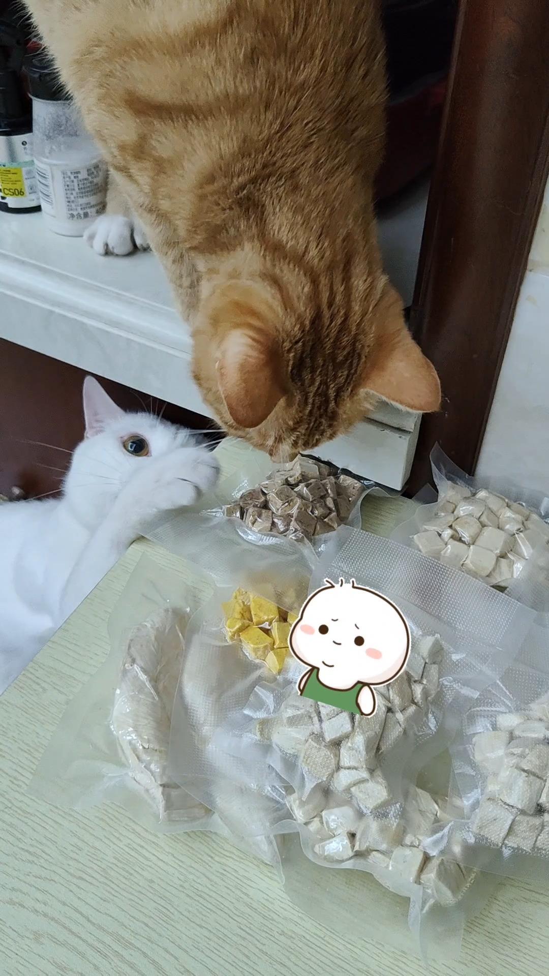 我家的三个猫都是爱吃的,在我分装的过程中,还一直想着要偷冻干。
