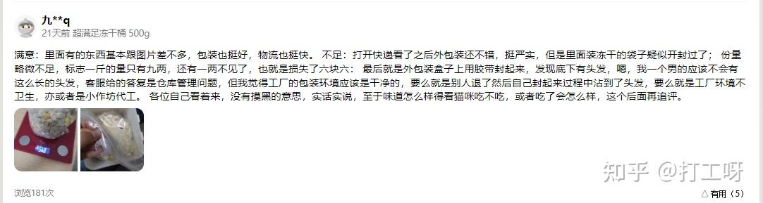 我也刷到商品评价,有个倒霉蛋买回来发现冻干分量少了,疑是商品是被人开封过了。