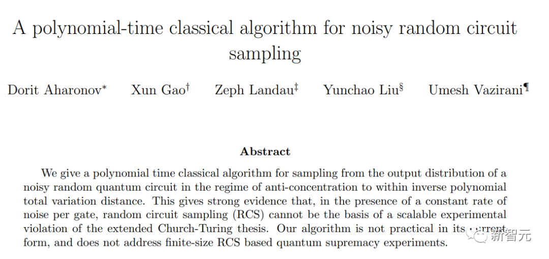 研究人员开发了一种经典算法,可以模拟存在错误时的随机电路取样实验来证明这个结论。