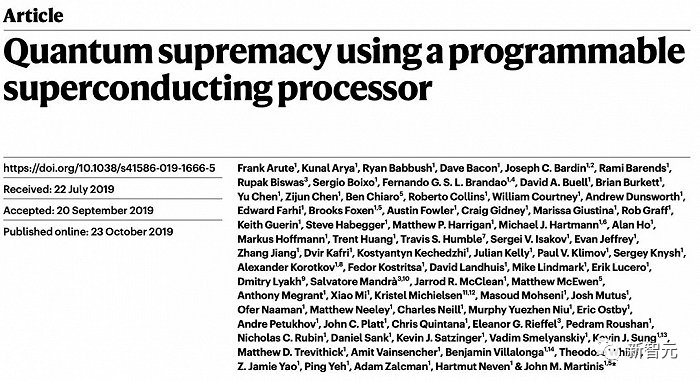 在Nature上发表的论文中称,该量子系统只用了200秒完成一个计算,而同样的计算用当时最强大的超级计算机Summit执行,需要约10000年。