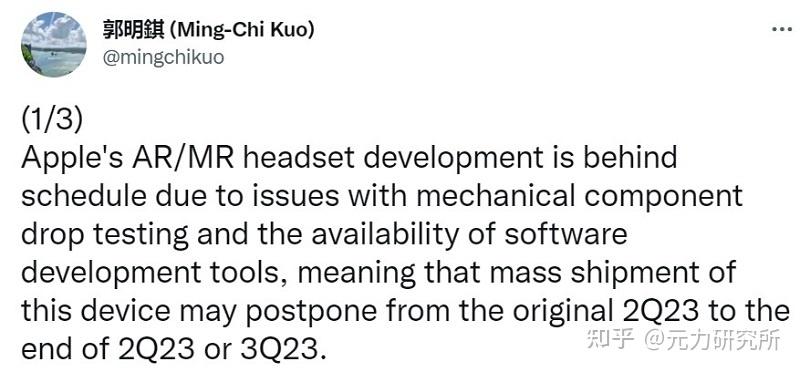 3.郭明錤:苹果首款AR/VR头显预计秋末推出