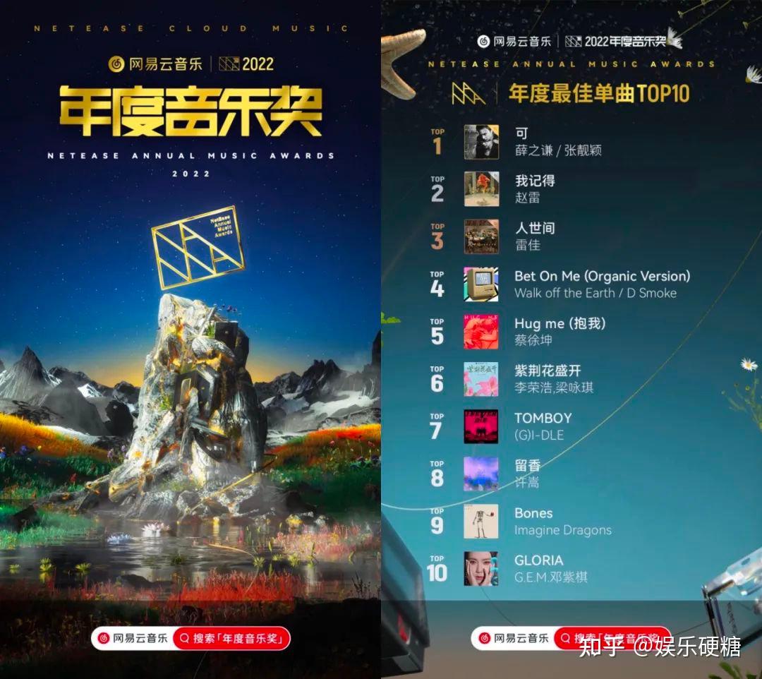 看来看去,还是网易云音乐2022年度音乐奖算是兼具了热度、口碑和行业价值。薛之谦、Taylor Swift、G.E.M.邓紫棋、赵雷、蔡徐坤等不同背景的音乐人均有上榜,流行、说唱、民谣、Kpop、Jpop等多元类型均有涉及。