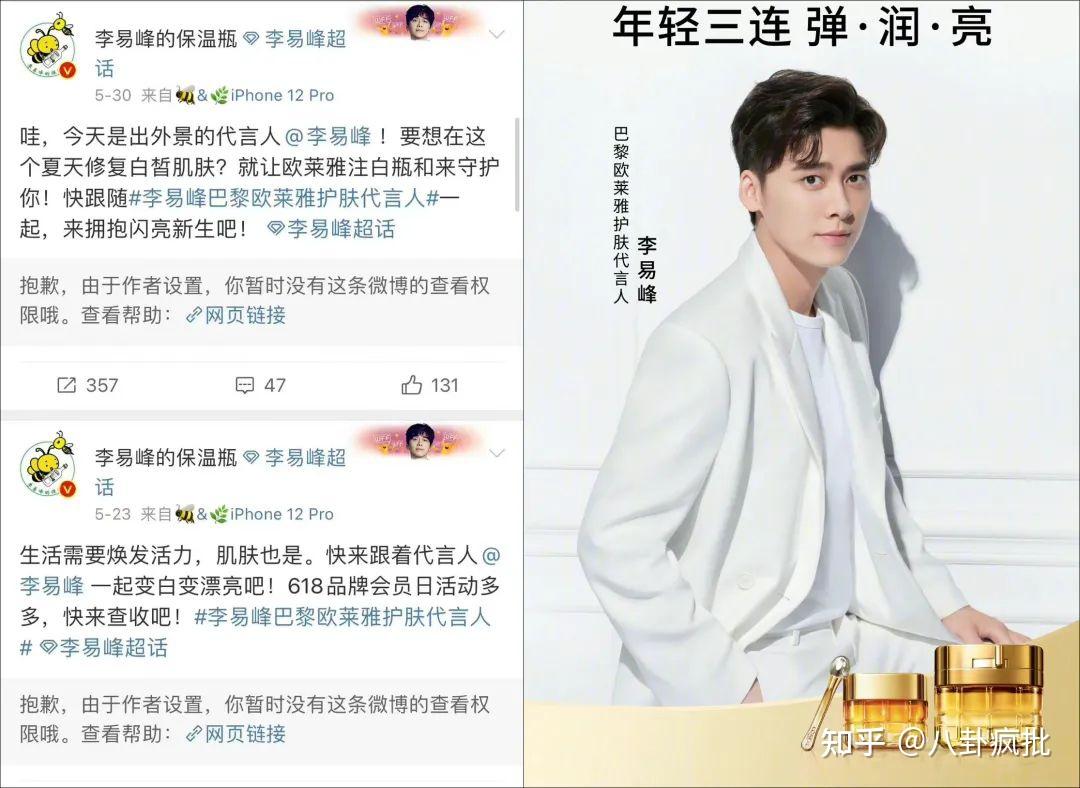 李易峰粉丝团转发巴黎欧莱雅品牌博文无法显示