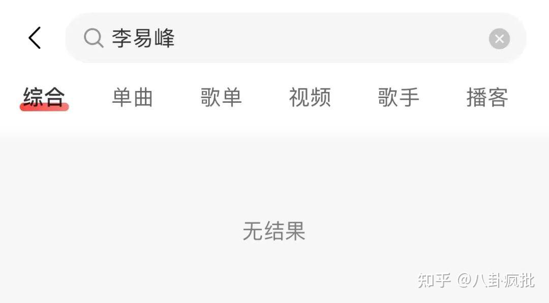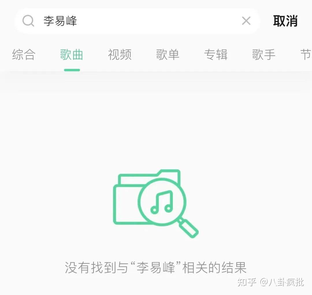 在QQ音乐、网易云音乐等音乐平台也均无“李易峰”的搜索结果。