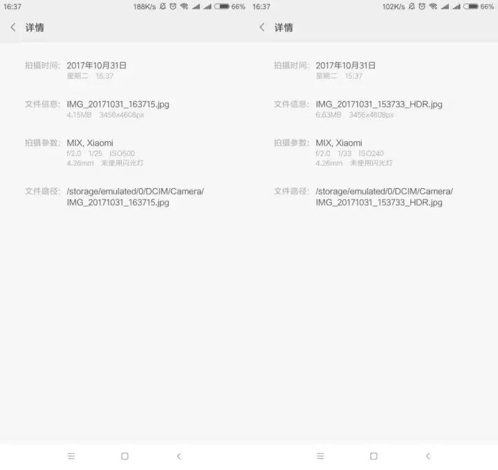 打开 HDR+ 选项后,使用谷歌相机拍照的第一感觉是成像速度极慢,需要等待四五秒的时间;其次是生成的照片文件体积很大,一般有 6-7MB,而系统相机的体积一般为 3-4MB。