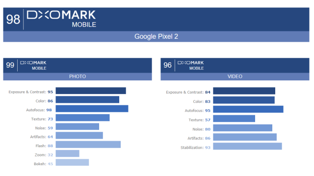 10 月上旬,Google Pixel 2 发布,并且在 DxOMark 上拿下了 98 的高分,在手机摄像头中名列榜首。