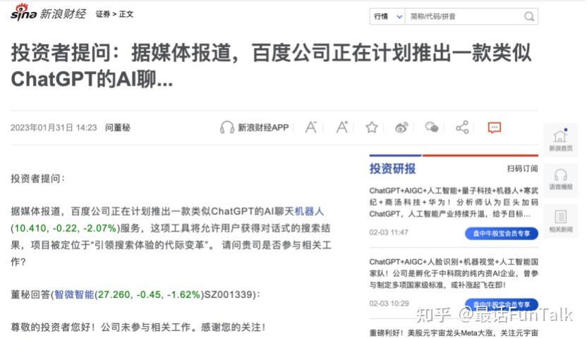 在不同资本市场信息平台上,投资者纷纷提问百度相关公司,是否有参与百度ChatGPT相关项目的合作。