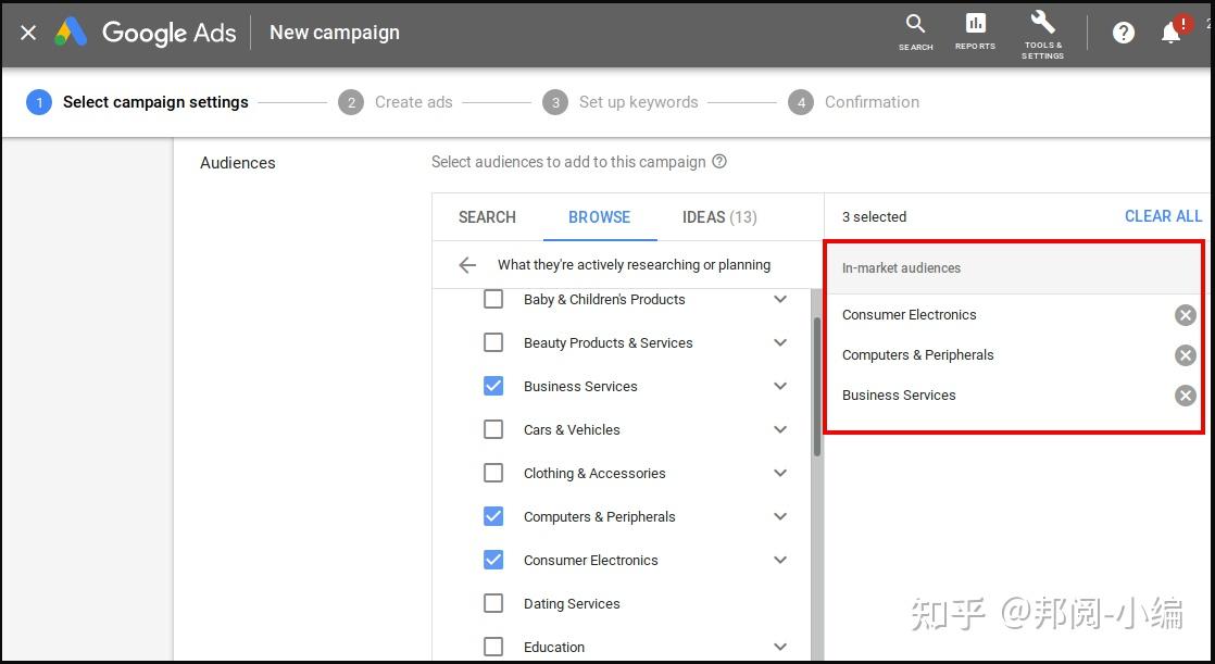 在为Google广告系列制作受众群体时,请确保包含相同的细分,以向所需受众群体展示你的广告。