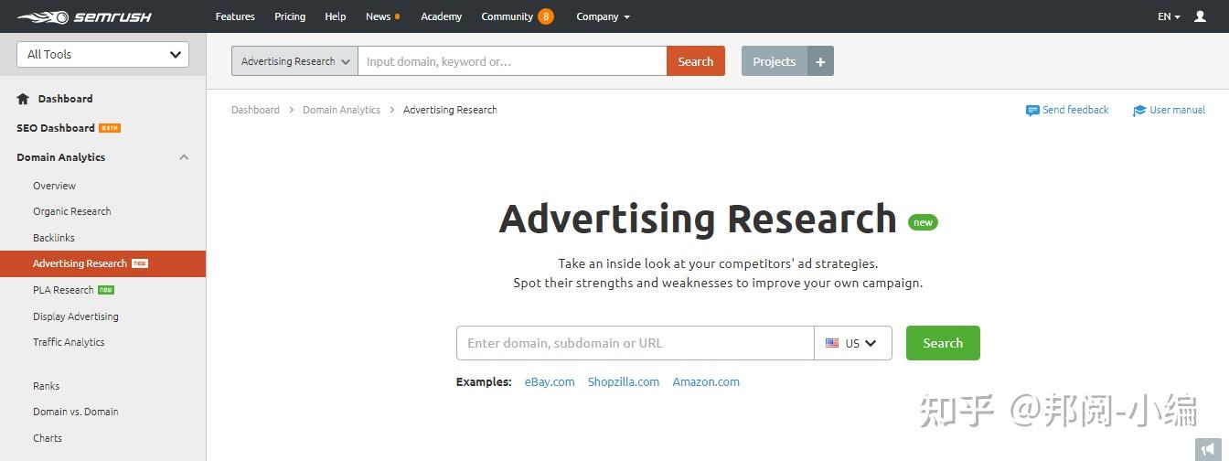 我们有很多竞争对手分析的工具,但我推荐SemRush。