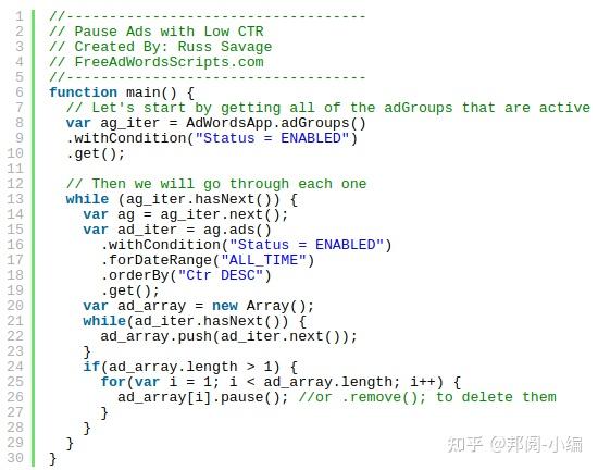 以下是Google广告脚本自动暂停点击率较低的广告的示例
