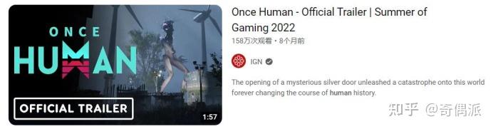《代号:EOE》定名为《Once Human》后在2021年10月测试过手游版,其PC版在去年11月开启首测,预计在2023年Q4上线Steam,在IGN展会上的首曝视频于youtub上获得近160万播放。