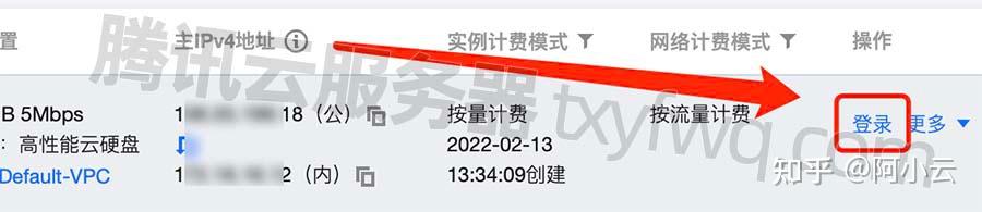 在腾讯云服务器控制台,找到目标云服务器,点击右侧“登录”,如下图: