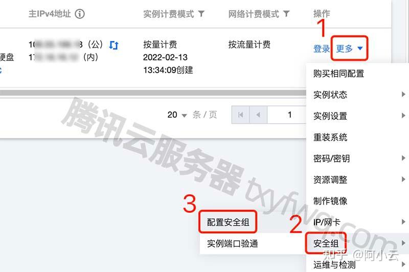 登录到腾讯云服务器控制台,找到目标云服务器,点“更多”--“安全组”--“配置安全组”,如下图: