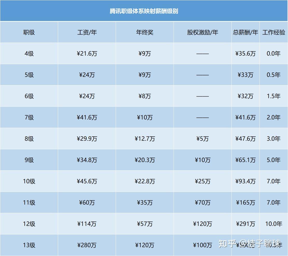 接下来我们来看看腾讯2022年员工的工资等级对照表: