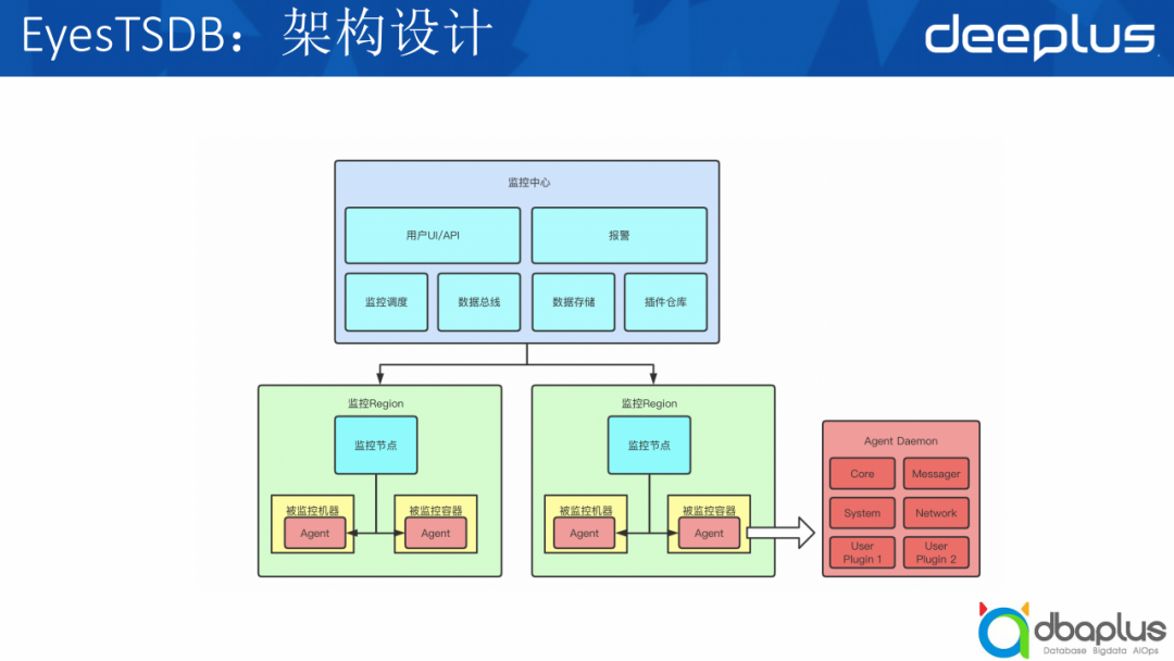 负责采集监控指标上报到Region,统一由Region上报到数据总线,包括核心模块、系统插件、网络插件以及用户自定义插件。