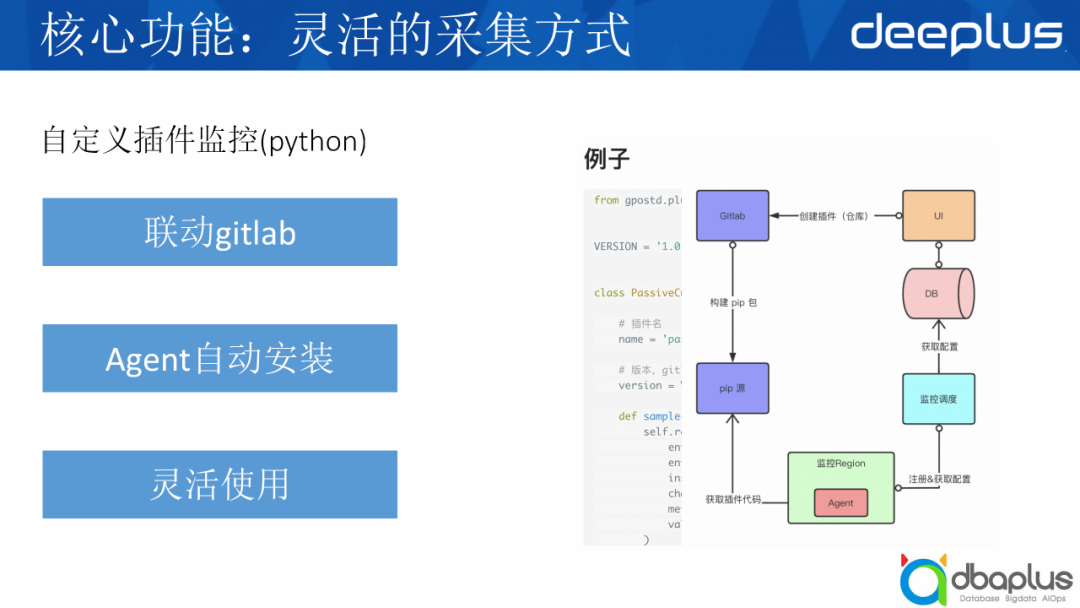 是我们的一个特色,会联动gitlab保存用户的插件,用户可以通过自定义插件代码实现想要的任何监控方式。