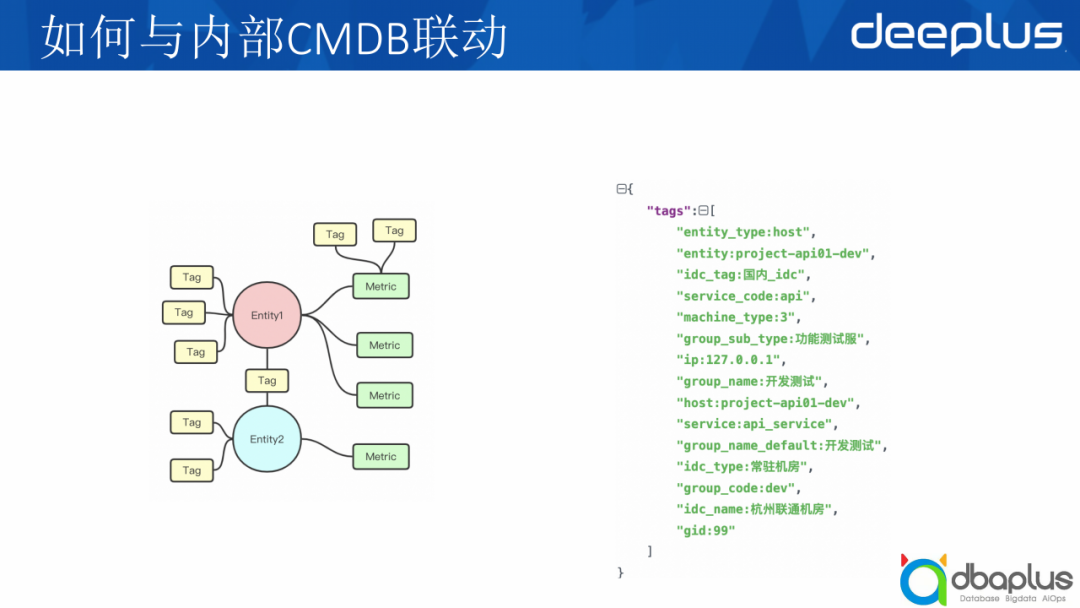 这一方面我们EyesTSDB那一套其实有一些延迟,比如这么大体量的CMDB数据如何流到数据里面再存储下来,或者到报警部分其实是有延迟的。然后我们是有与CMDB系统合作做到一些实时同步,我们新的一套CMDB有一些拓扑结构,它用图数据库存储CMDB的数据,然后当中间某个节点发生变更时,它会触发一个变更消息,收到消息之后会把这个节点相关的信息都进行更新,这里涉及一些批量合并以及时间的策略,这套也是我们目前正在做的,基本上已经落地了,后面有机会再跟大家分享一下我们是怎么做的。