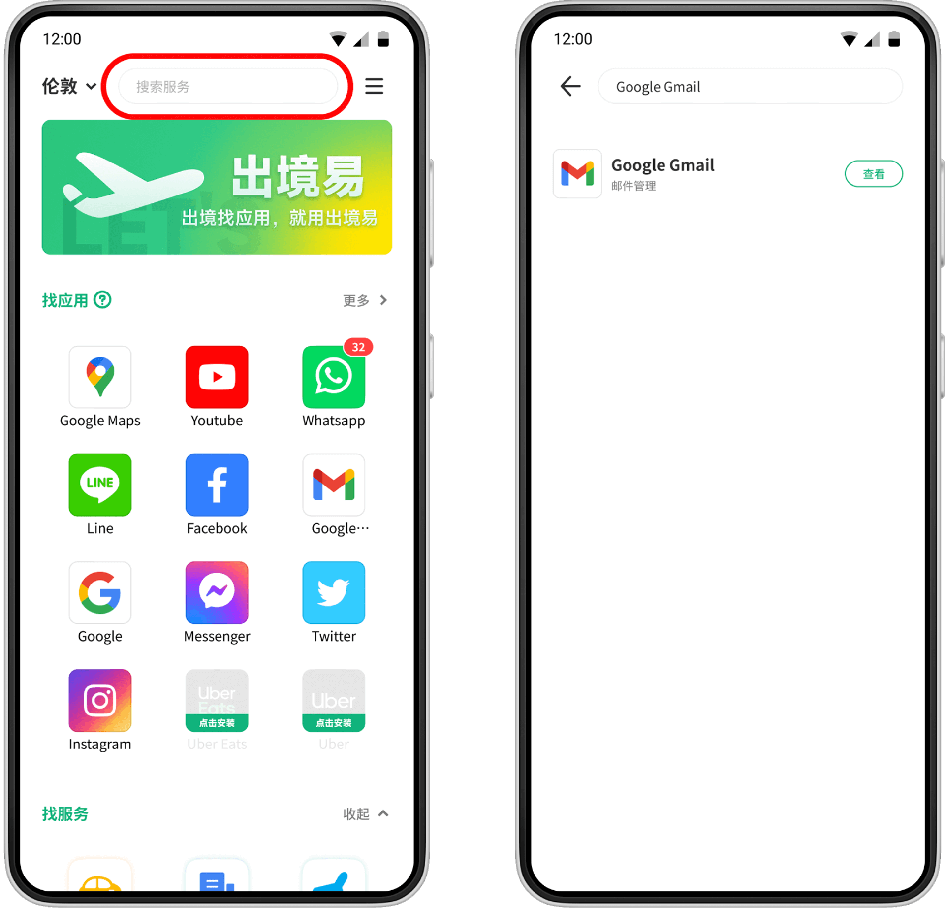直接在华为应用商店搜索“出境易”,应用安装成功后打开,就可以直接安装包括谷歌、谷歌邮箱、油管、脸书、LINE、INS等海外常用的12款应用,谷歌服务框架的问题不用担心,这个应用是自带的。