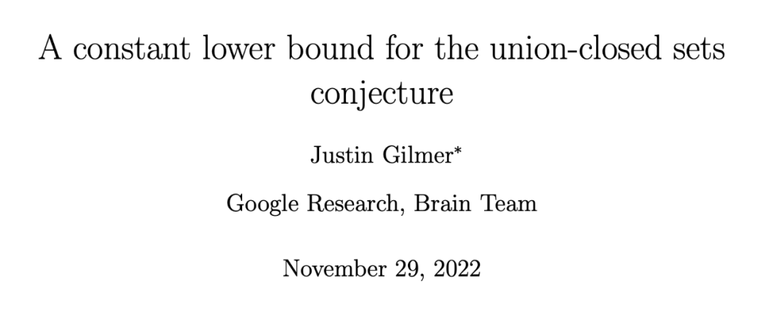 Gilmer 的工作开始接近 Frankl 的猜想。这是因为很容易证明:在并封闭集族中,两个集合的并集包含的信息必然少于两个集合本身 —— 而不是更多。