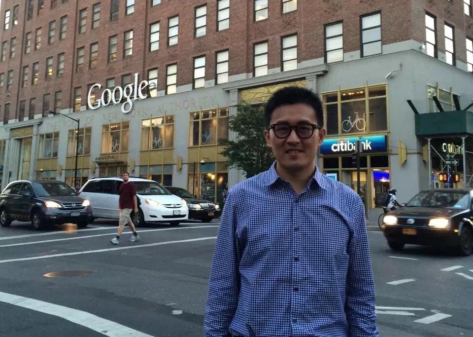 ▲ 王成仓 2015 年到谷歌纽约总部出差,在谷歌大楼前留影。