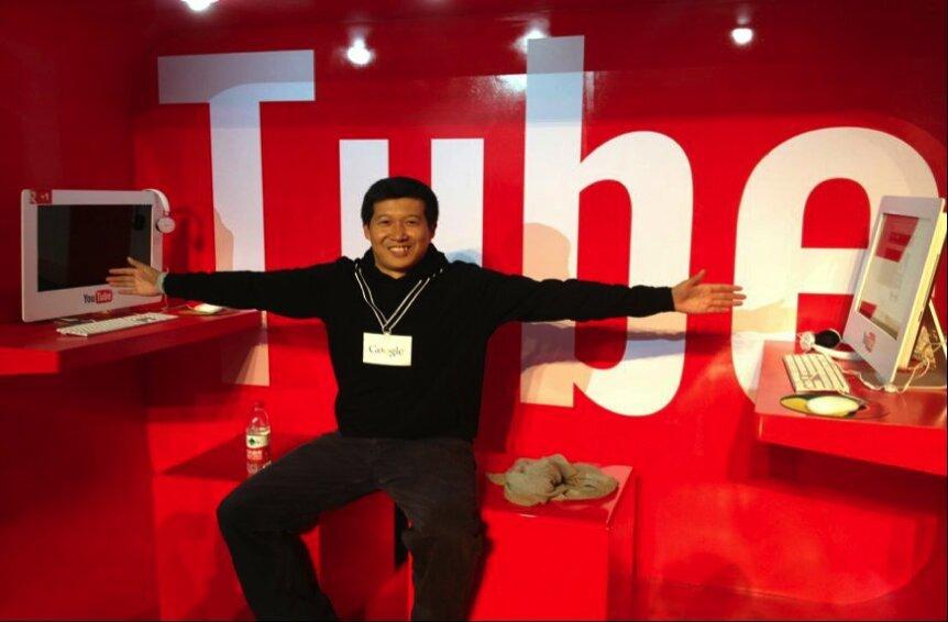 ▲ 2012 年谷歌在 789 举办业务展览,殷剑波与 Youtube 展位合照。