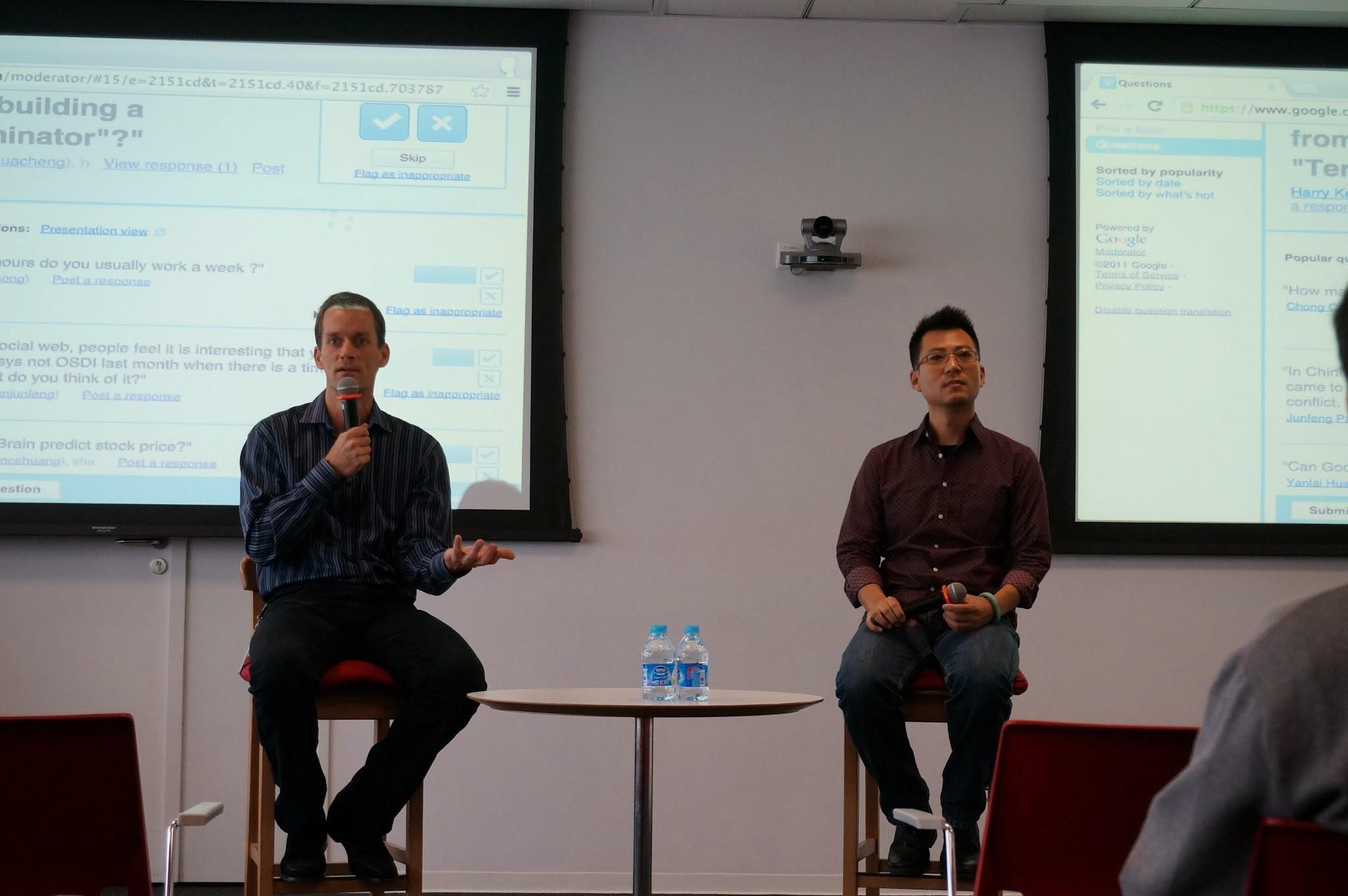 ▲ 郄小虎与谷歌明星工程师 Jeff Dean 在办公室做 Panel。