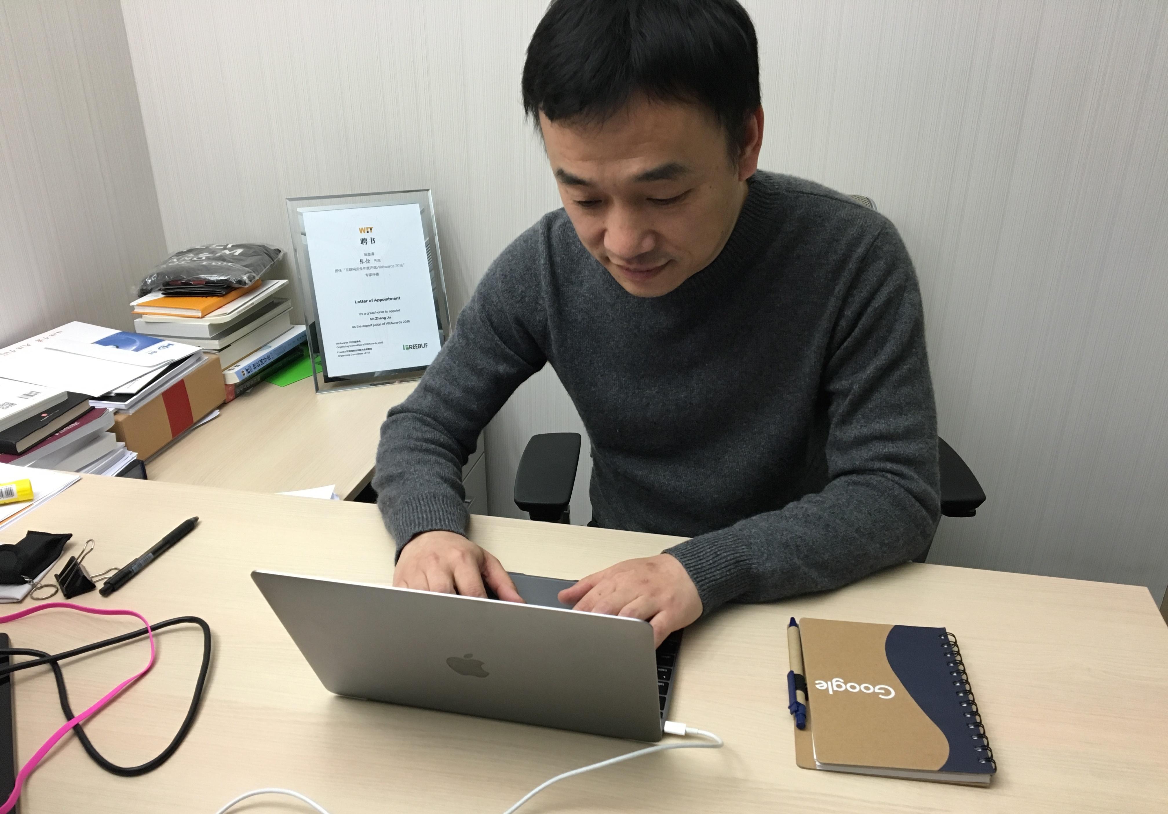 ▲ 张矩与 Google 笔记本,摄于峰瑞资本办公室。