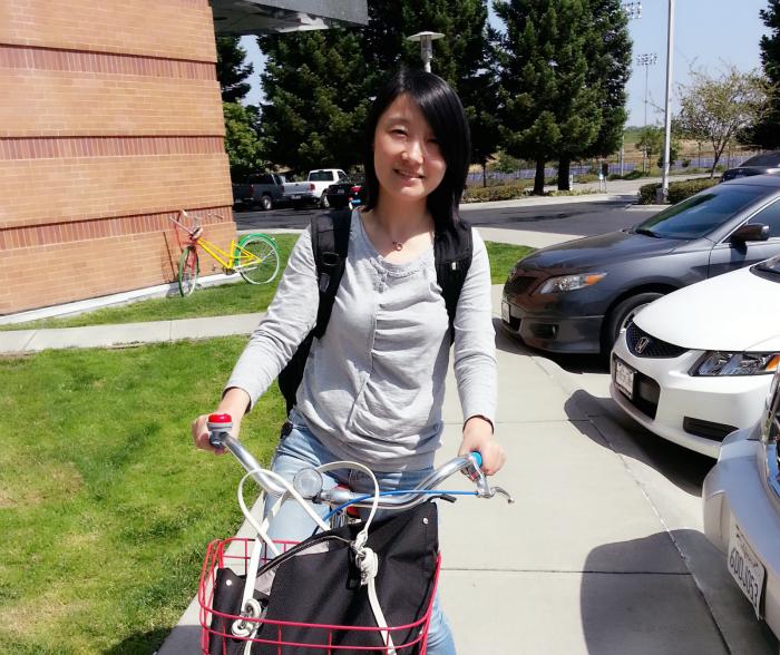 ▲ 高茵茵 2013 年夏在谷歌总部所在的 Mountain View 出差,骑的是 Google 自行车。