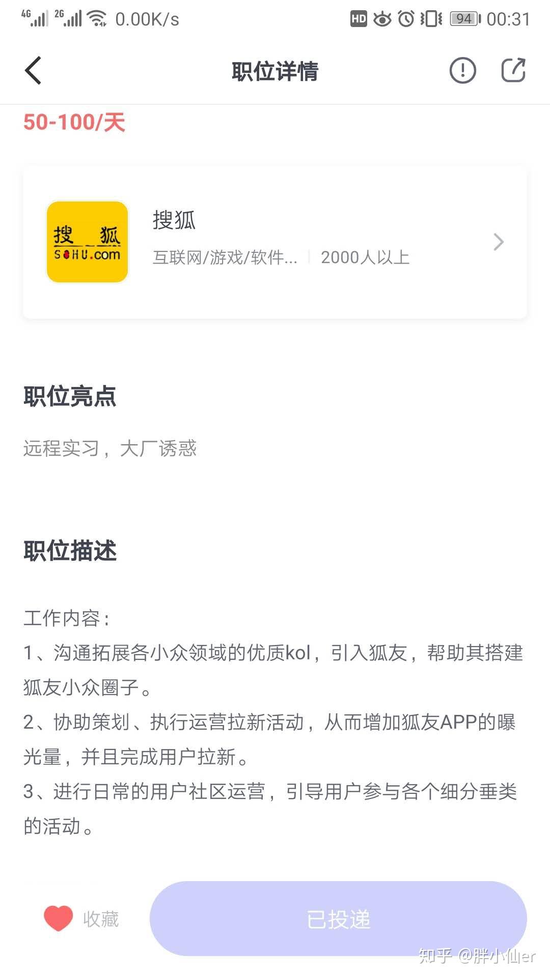 在某实习app上投了搜狐的运营实习生,JD和正规实习没啥两样,如图。
