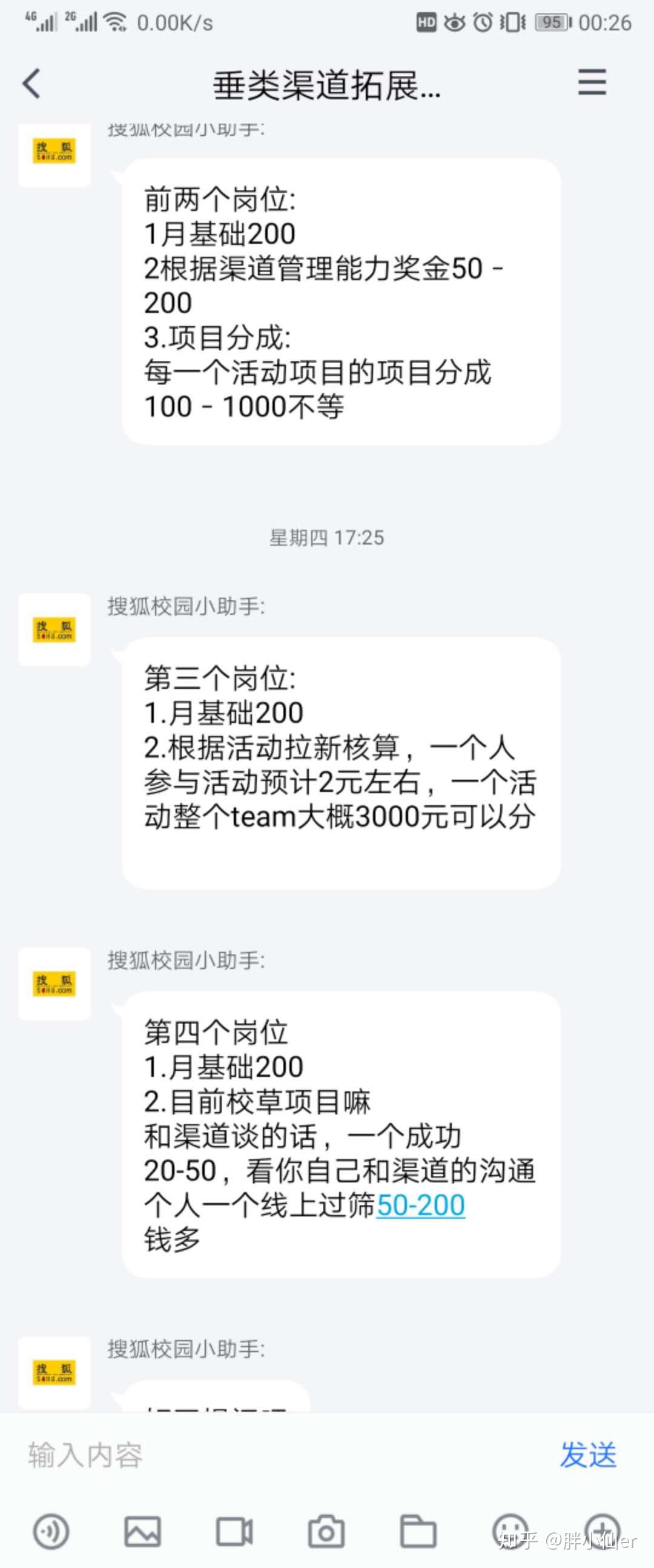 在这个狐友远程实习生的群里,这波大搞招了50多个人(其实仔细想一下,哪种正规岗位会一下子招这么多人),全程线上交流,实习周期内你应该是见不他们人的。这个垂类渠道拓展的大概工作内容就是去网上搜索一下高校的社团,让他们入驻狐友的群里,这样不断不断地向外拉人,才能完成本月的考核。刚开始实习时,是有淘汰期的,一周没有完成拉人任务直接被淘汰,没有工资,通过考核的人才能正式进入实习期(这和当初那位同学质疑的情况一模一样)。