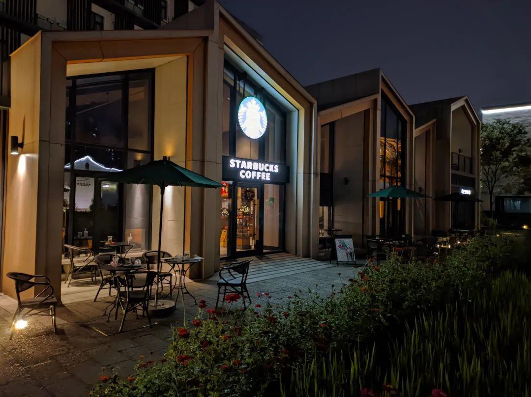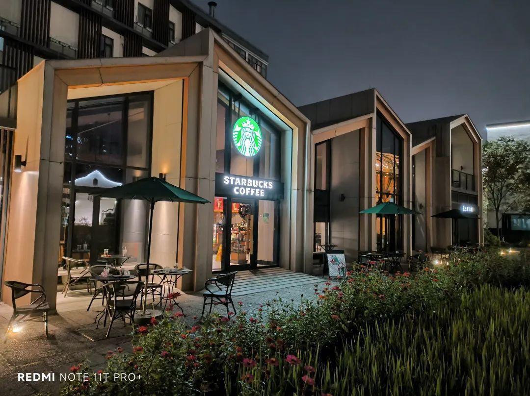 而谷歌相机,它的高光根本就没压下来,即使我特意在功能菜单里开启了 “ 压光夜景 ” 选项,星巴克灯牌也还是过曝的: