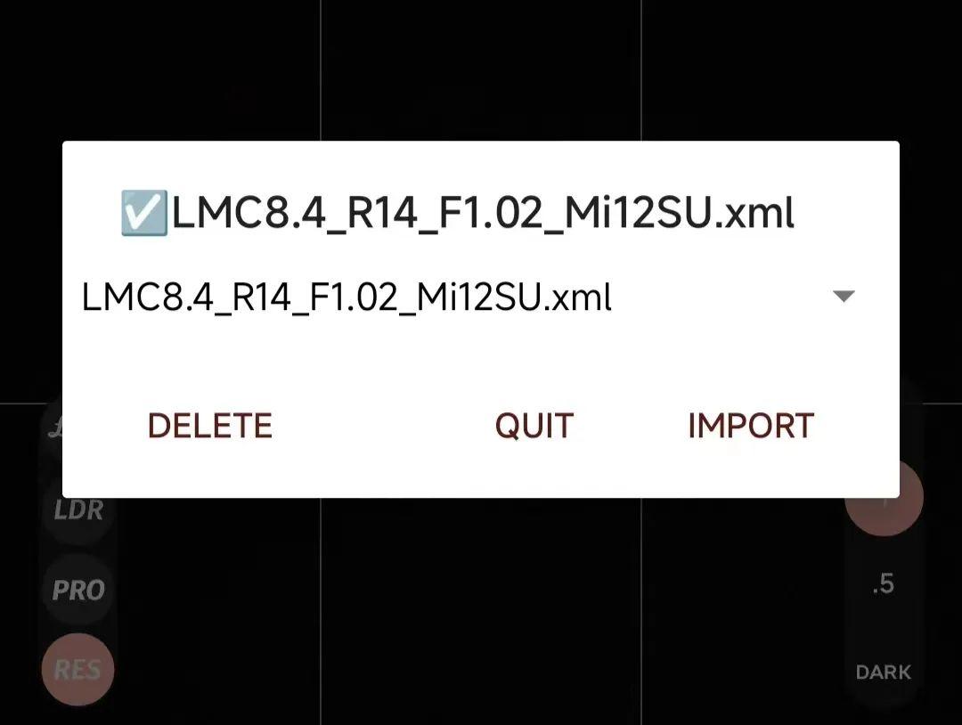 在安装完谷歌相机后,我们只需把 xml 结尾的配置文件移动到对应文件夹,然后打开谷歌相机双击空白处,选中配置文件点击导入,就算大功告成: